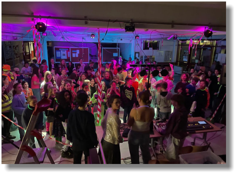 Unterstufendisco der SV (2025)An einem frühen Märzabend war es endlich so weit: Die SV desRhein-Gymnasiums steckte in den Vorbereitungen für ihreUnterstufendisco, die an diesem Abend ihr Comeback feiernsollte.Während die ersten aufgeregten Gäste aus den Klassen 5-7gespannt vor der Tür warteten, machte die SV den finalenFeinschliff im Foyer, sodass für den anstehenden Abend unterdem Motto „Glow Party - leuchtende Beats und bunte Lichter“alles perfekt vorbereitet war. Die passend zum Motto verkleidetenSchülerinnen und Schüler sowie Lehrerinnen und Lehrerverbrachten den Abend bei toller Musik und gemeinschaftlichenParty-Spielen wie „Limbo“.Für gute Verpflegung wurde selbstverständlich auch gesorgt:Neben einem durch die Paten unterstützten Snack-Verkauf boteine schön dekorierte Candy-Bar eine vielfältige Auswahl anNaschereien. Eines der Highlights des Abends war derKostümwettbewerb, bei dem es unzählige kreative Outfits in dieengere Auswahl schafften.Dieser fantastische Abend hallt immer noch positiv nach und dieSV ist gewillt, einen solchen im nächsten Schuljahr zuwiederholen.Leona Gloria Sliwka, 10a
