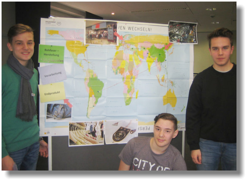 Kleider machen Leute! – Wie funktioniert der Welthandel?3. März 2017„Zu welchen Arbeitsbedingungen und aus welchen Ländernerhalten wir unsere Kleidung? Welche Kosten stecken in einemT-Shirt? Welche Möglichkeiten gibt es, den eigenen Konsumverantwortungsbewusst zu gestalten?“ Diesen und weiterenFragen gingen die Schüler der Klasse 10a in einem zweitägigenSeminar unter dem Motto „Entwicklung durch Handel?“ nach. DieVeranstaltung im Haus Venusberg in Bonn wurde von ValerieSchulz vom Politische Arbeitskreis Schulen e.V. (PAS) moderiertund von Klassenlehrer Michael Schmidt und ErdkundelehrerinSonja Endler begleitet.Ausgehend von dem Planspiel „Das Welthandelsspiel“ erfuhren die Schüler mehr über die Arbeitsbedingungen zwischen denIndustriestaaten des Nordens und den armen Ländern desSüdens. In Gruppenarbeiten erhielten sie Einblick in die globaleWertschöpfungskette von Textilien: Am Beispiel einer Jeanswurde deutlich, dass sich die verschiedenen Produktionsschritteauf die ganze Welt verteilen und dass eine Jeanshose einenlangen Weg zurücklegt, bis sie im Laden zum Kauf angebotenwird. Dabei aufgezeigte katastrophale Arbeitsbedingungen undmangelnde Arbeitsrechte führten unabdingbar zuFragestellungen wie: „Kann es auch anders gehen?“ und „Wiekönnen wir die Welt positiv verändern?“Ein absolutes Highlight am Ende des Seminars war für dieJugendlichen das Expertengespräch mit Sebastian Binder,Gründer von Rednib Clothing. Der Jungunternehmer produziert„FairWear“-Kleidung im Sinne der Nachhaltigkeit und vertreibtdiese Mode unter eigenem Label in seinem Bonner Geschäft. Sohatten zum Abschluss der Veranstaltung alle Zehntklässlerwichtige neue Erkenntnisse gewonnen und erfahren, wie sichKonsum verantwortungsvoll und wertschätzend gestalten lässt.Frei nach dem Motto: „Kleider machen Leute! – Mit Welthandelhat jeder was am Hut!“