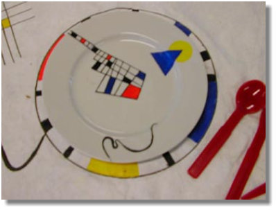 mehreren Werken des Künstlers auf dem Rund des Tellers miteinander kombinierte und dabei auch