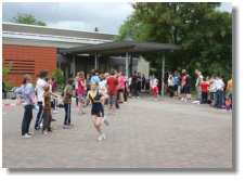 Runde auf dem Schulgelände. Von jeder Klasse musste stets