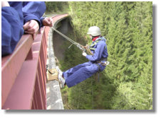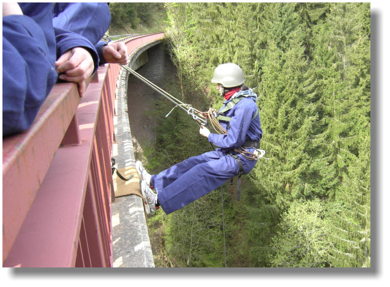 der Luft und seilt sich Meter um Meter ab. Die beiden gehören