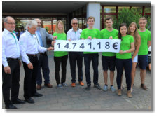 SV-Team des Rhein-Gymnasiums einen Scheck in dieser Höhe