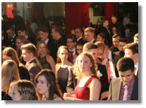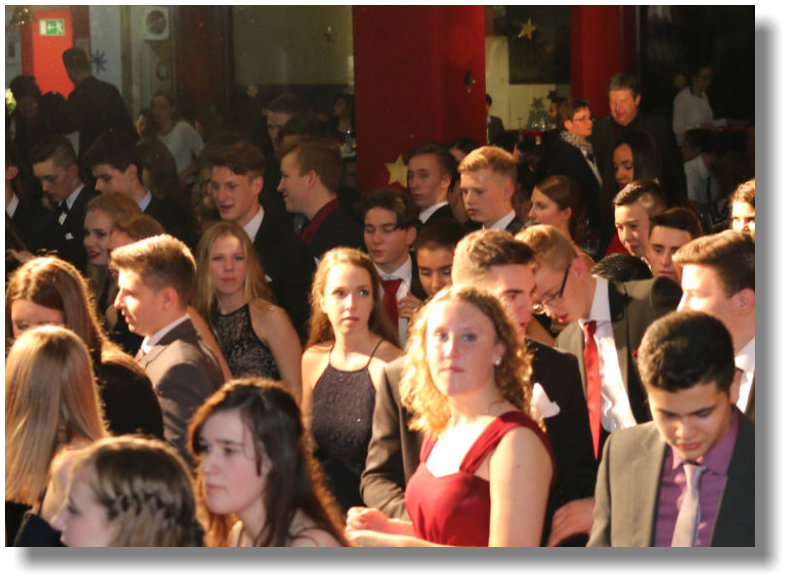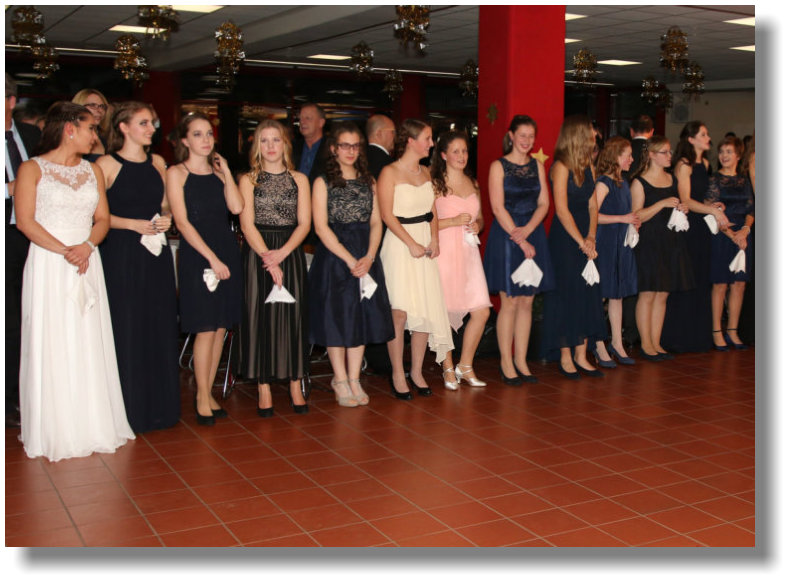 Tanzeleven bei, die jungen Herren vorrangig im Anzug und die jungen Damen in schicker Abendrobe.