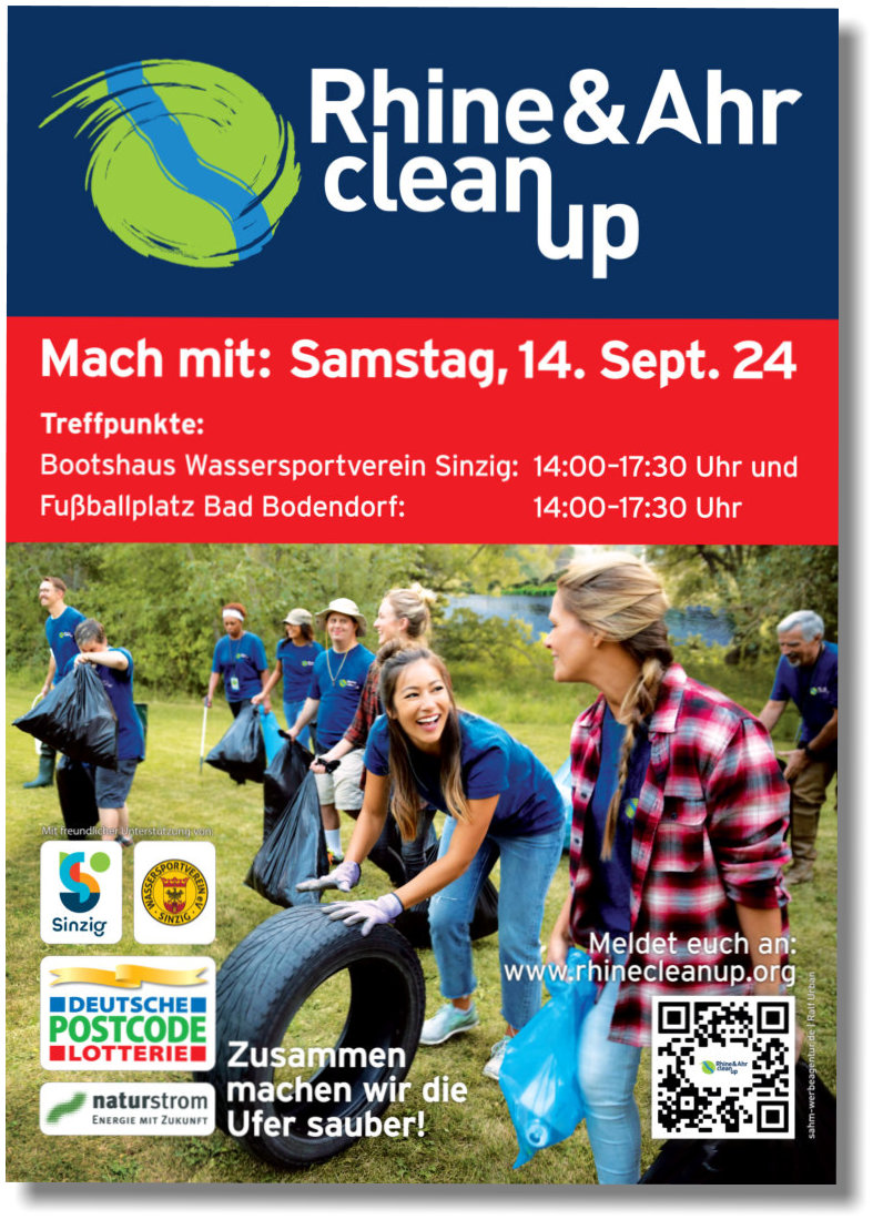 Fußballplatz, um gemeinsam Müll an der Ahr zu sammeln. Eine vorherige Anmeldung ist bei beiden