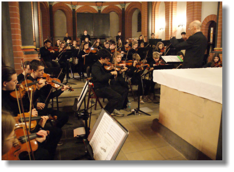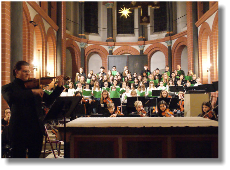 Streicherklasse, Mittel- und Oberstufenchor und Orchester einen