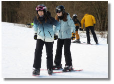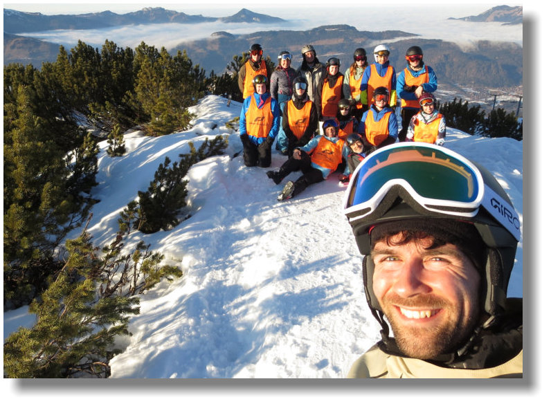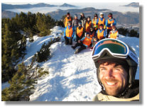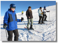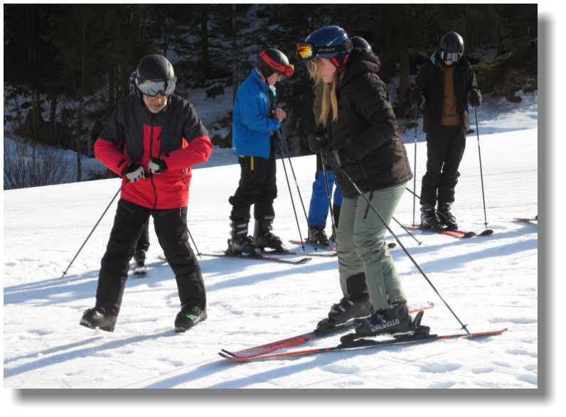 Neulinge, angeleitet von ihren (Ski-)Lehrern Marc Steuer, Lena
