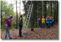 Kletternden sichern sollte. Ein Team bestand aus drei