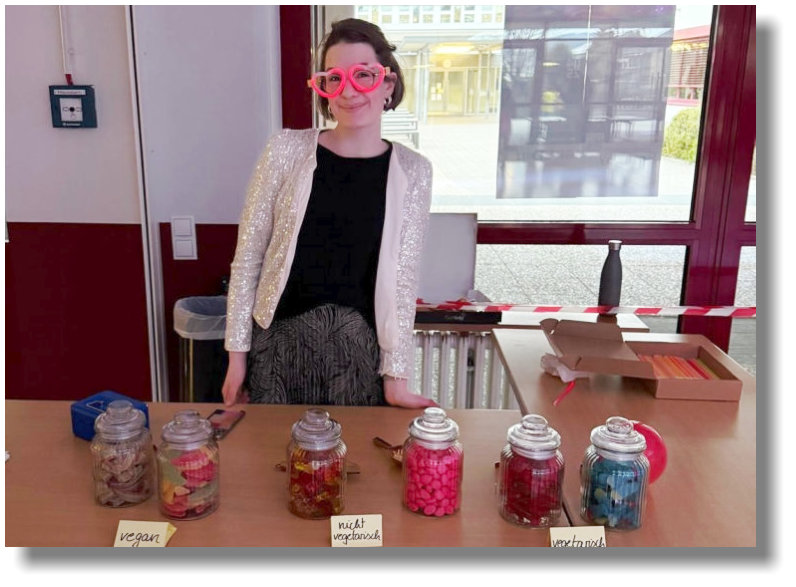 Unterstufendisco der SV (2025)An einem frühen Märzabend war es endlich so weit: Die SV desRhein-Gymnasiums steckte in den Vorbereitungen für ihreUnterstufendisco, die an diesem Abend ihr Comeback feiernsollte.Während die ersten aufgeregten Gäste aus den Klassen 5-7gespannt vor der Tür warteten, machte die SV den finalenFeinschliff im Foyer, sodass für den anstehenden Abend unterdem Motto „Glow Party - leuchtende Beats und bunte Lichter“alles perfekt vorbereitet war. Die passend zum Motto verkleidetenSchülerinnen und Schüler sowie Lehrerinnen und Lehrerverbrachten den Abend bei toller Musik und gemeinschaftlichenParty-Spielen wie „Limbo“.Für gute Verpflegung wurde selbstverständlich auch gesorgt:Neben einem durch die Paten unterstützten Snack-Verkauf boteine schön dekorierte Candy-Bar eine vielfältige Auswahl anNaschereien. Eines der Highlights des Abends war derKostümwettbewerb, bei dem es unzählige kreative Outfits in dieengere Auswahl schafften.Dieser fantastische Abend hallt immer noch positiv nach und dieSV ist gewillt, einen solchen im nächsten Schuljahr zuwiederholen.Leona Gloria Sliwka, 10a