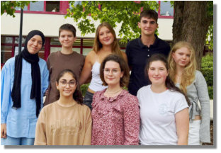 Die Schülervertretung (SV)•Simon Theisen (MSS 12)(Schülersprecher)•Lina Staffeldt (MSS 12)(Schülersprecher-Vertreterin)•Lena Oltersdorf (MSS 13)•Jona de Hesselle (MSS 13)•Leona Sliwka (MSS 11)•Anna Hernandez (10c)•Leona Daoud (9b)•Riem Alah Rachi (6d)Verbindungslehrer: Frau Büchler, Herr Raum